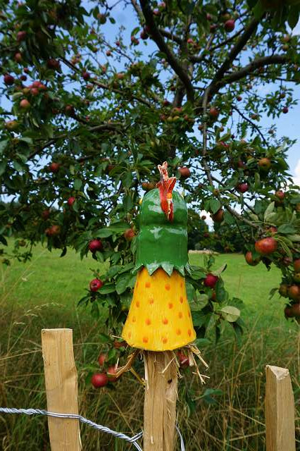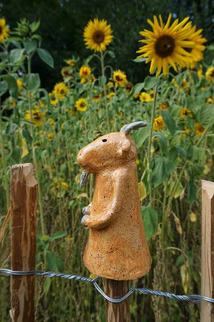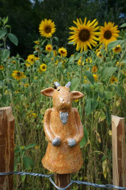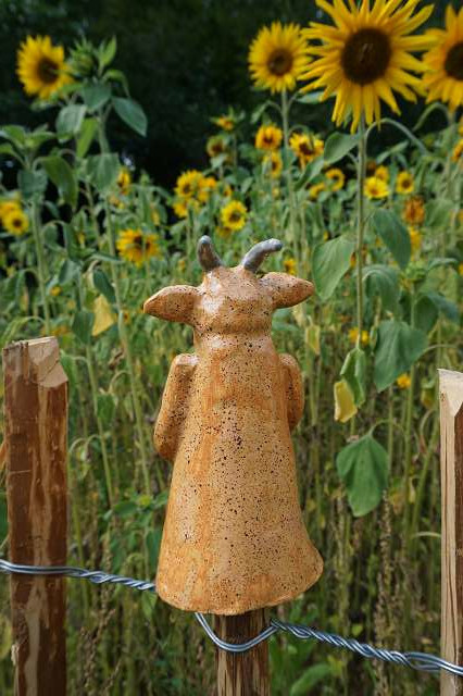 Mit Stroh befüllt sind sie auf Stock oder Zaun ein willkommenes Quartier für Ohrenkneifer. Aber auch auf der Fensterbank sorgen die Figuren für gute Laune.