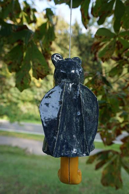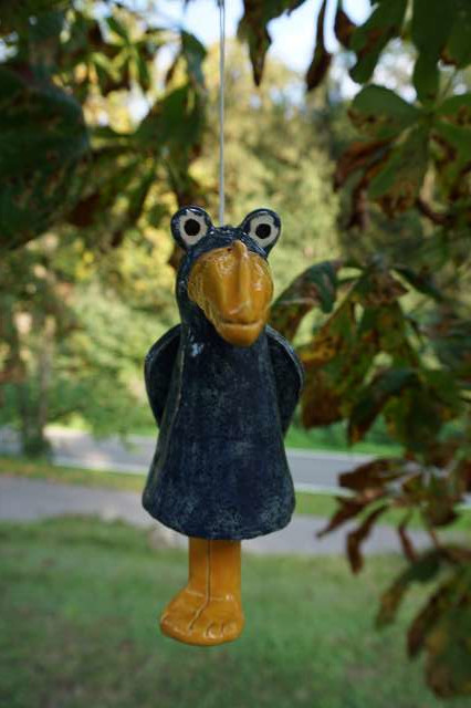 Rudi hängt in Ihrem Garten ab. Man muss ja auch mal Pause machen. Seine Beine sind, wie bei einer Glocke, beweglich aufgehängt.