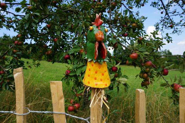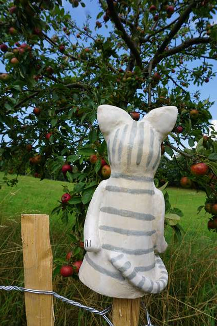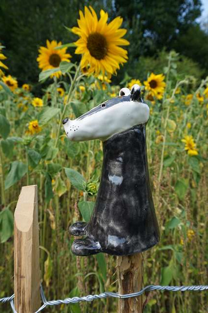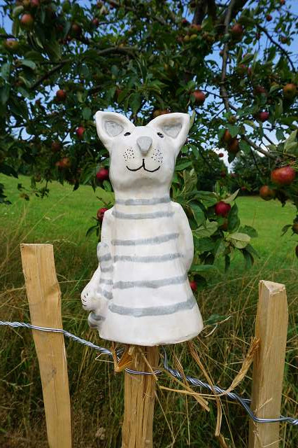 Mit Stroh befüllt sind sie auf Stock oder Zaun ein willkommenes Quartier für Ohrenkneifer. Aber auch auf der Fensterbank sorgen die Figuren für gute Laune.