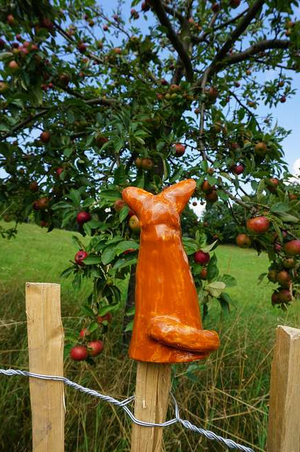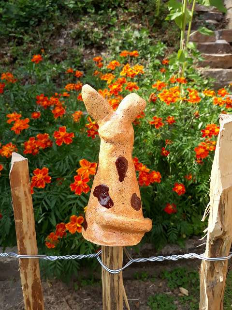 In einer kleinen Manufaktur im Extertal von Hand getöpfert, liebevoll glasiert sind sie eine Zierde für jeden Lattenzaun.